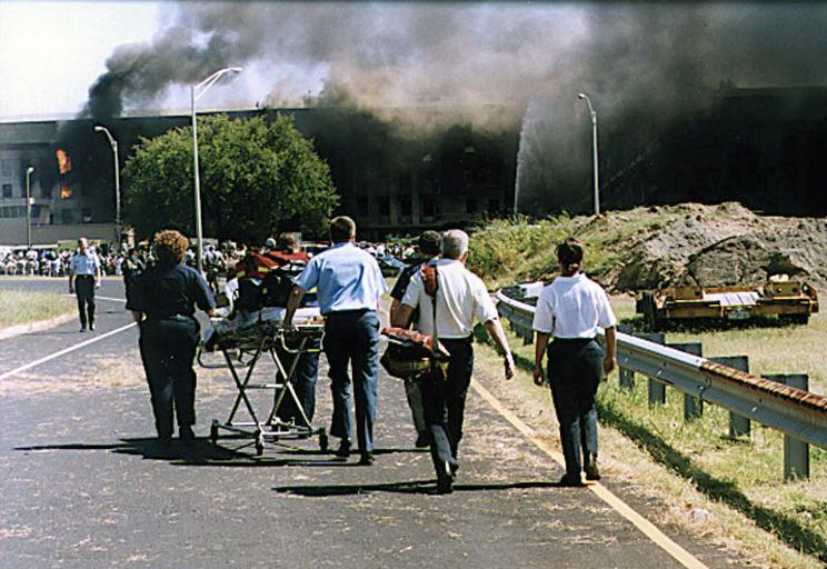 | Keywords: DA-SD-03-08933.JPEG  Various medical emergency units from the Washington DC area make their way toward the smoldering Pentagon after American Airlines Flight 77 piloted by terrorists flew it into the western wall http //www dodmedia osd mil/Assets/Still/2003/Army/DA-SD-03-08933 JPEG 2001-09-11 PAUL DISNEY USA PD-USGov PD-USGov The Pentagon on 9/11 September 2001 photographs |