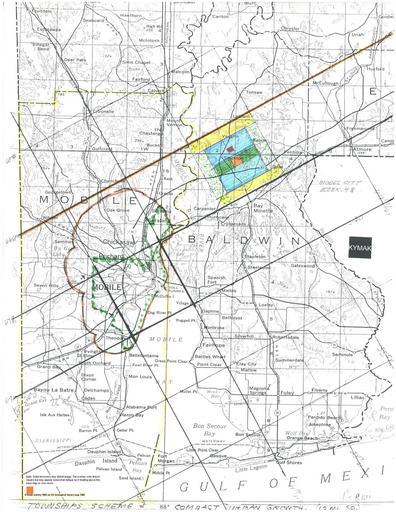 Keywords: Dab295.jpeg Mobile Alabama Region USGS map with KYMAK overlay Mobile Alabama KYMAK Comprehensive Regional Master Plan Details on Summary page The Mobile Region map is a part of a larger regional plan The straight orange line is in the major zone of development which extends to New Orleans and points beyond The irregular brown line shows expected continuous growth proposed in 1965 of the City of Mobile; the dotted green line is the current Mobile city limits KYMAK overlay for an orderly and systematic plan Municipal units are about 12 miles square the size of four townships and are laid out on a bias to avoid confusion with other survey lines; thus oriented it is an economy toward building life extension Unit perimeters are rights-of-ways reserved as open space for major transportation routes which can be developed as the need arises The Mo del-city shown at the top right can be adapted to any unit but would apply only to new development particularly of streets and subdivisions; old development remains as long as it is useful or desirable - yellow zone is suburban based on Frank Lloyd Wright's Broadacre City concept blue is residential green is agricultural the red square is the executive compound; the orange is the urban core dotted green is public land for wild-life preservation Suggested population densities and distribution and other details are on the KYMAK Model City page 2013-01-25 own MyName Dab295 <span class signature-talk >talk</span> 17 05 25 January 2013 UTC Cc-zero Maps of Alabama |