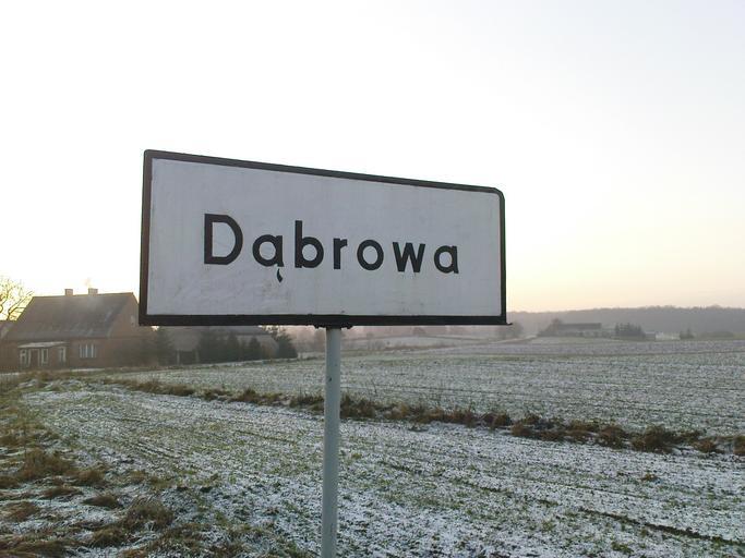 Keywords: Dąbrowa.JPG pl Tablica wjazdowa od strony Kamienia Krajeńskiego own Batistuta86 2008-12-27 City limit signs in Poland Dąbrowa Sępólno County