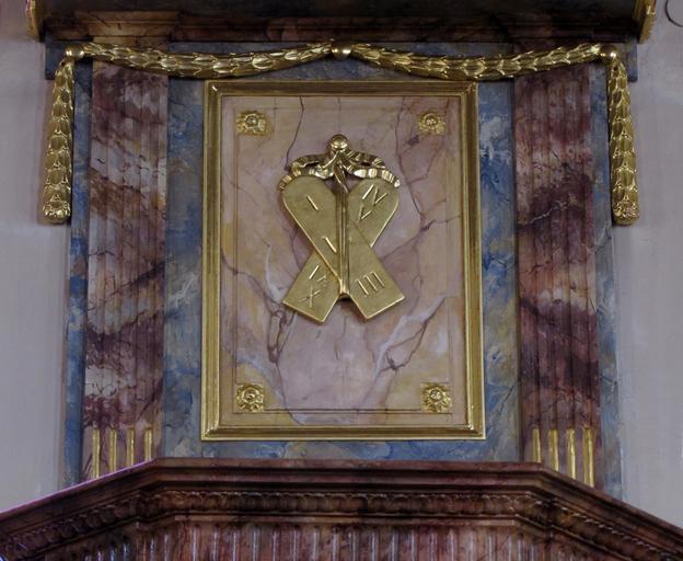 Keywords: Dachstein StMartin 061.JPG Alsace Bas-Rhin Dachstein Eglise Saint-Martin Chaire à prêcher Relief 10 commandements own 2012 Ralph Hammann Pulpit of Église Saint-Martin de Dachstein Bas-Rhin Photographs of Dachstein by Ralph Hammann Wooden reliefs in Bas-Rhin Neoclassical reliefs in Alsace The Ten Commandments in art Taken with Canon PowerShot SX20 IS 19th-century wooden reliefs in Alsace Cc-zero |