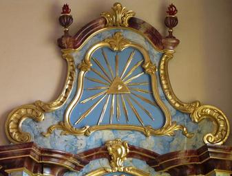 Keywords: Dachstein StMartin 076.JPG Alsace Bas-Rhin Dachstein Eglise Saint-Martin Couronnement de l'autel secondaire de Ste-Ursule XVIIIe own 2012 Ralph Hammann Autel de Sainte-Ursule de l'église Saint-Martin Dachstein Photographs of Dachstein by Ralph Hammann Baroque reliefs in Alsace Eye of Providence in Alsace Taken with Canon PowerShot SX20 IS Cc-zero |