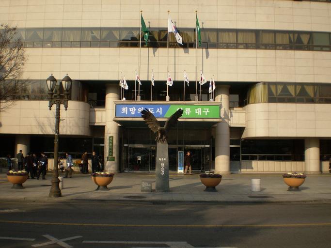 Keywords: Daegu city hall doksuri.jpg Statue of the doksuri 독수리 an eagle or buzzard the city bird of Daegu in front of the City Hall in Daegu South Korea Own 2007-01-27 Taken by User Visviva and released into the public domain Town halls in Daegu Statues in South Korea Statues of eagles |