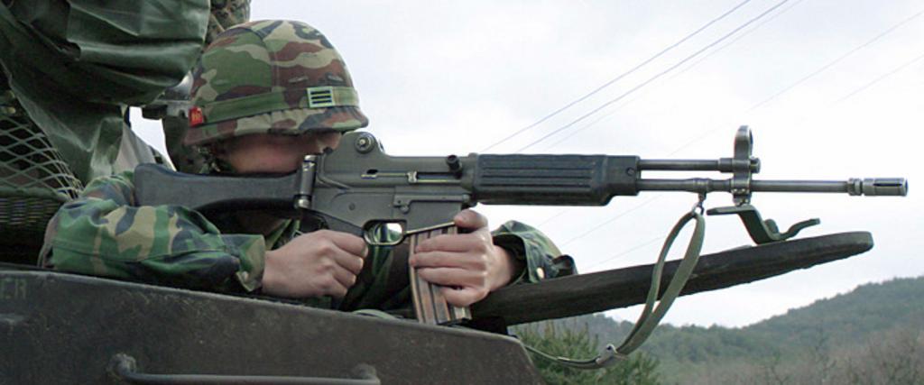 | Keywords: Daewoo K2 DM-SD-06-11424.JPEG US Marine Corps USMC Lance Corporal LCPL Anthony Bittle background left assigned to the 3rd Light Armored Reconnaissance Battalion LARB stands on top of his Light Armored Vehicle LAV-25 and observes as Republic of Korea KOR Marine Private First Class PFC Sung-Il mans a Daewoo 5 56 mm K3 light machine gun and KOR Corporal CPL Park Sung-Wo mans a Daewoo 5 56 mm K2 assault rifle during training at Su Song Ri Republic of Korea KOR while participating in the Amphibious Ready Group Exercise 2004 ARGEX 04 The Exercise is jointly conducted between the USMC and the U S Navy USN and the KOR and is designed to familiarize each unit with the techniques tactics and procedures associated with a Special Operations Capable SOC Unit source http //www dodmedia osd mil/DVIC_View/Still_Details cfm SDAN DMSD0611424 JPGPath /Assets/Still/2006/Marines/DM-SD-06-11424 JPG PD-USGov Republic of Korea Marine Corps Daewoo K2 3rd Light Armored Reconnaissance Battalion United States M1 helmets |