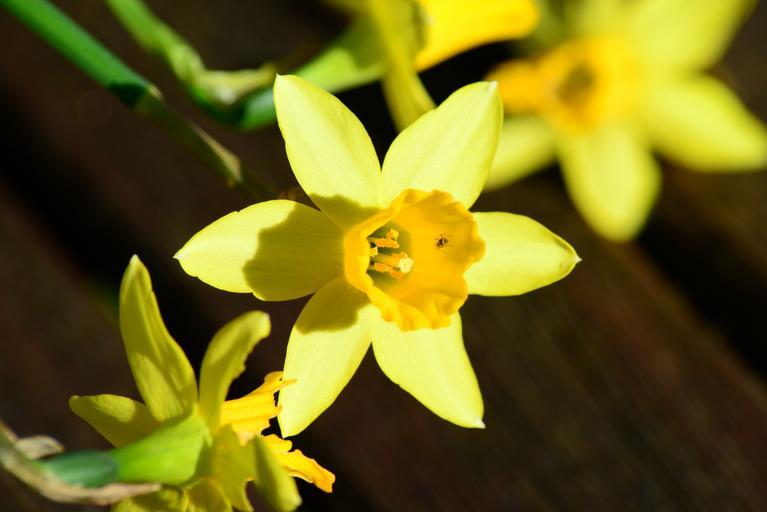 Keywords: daffodil dwarf daffodil narcissus pseudonarcissus aphid insects flower yellow garden close-up macro