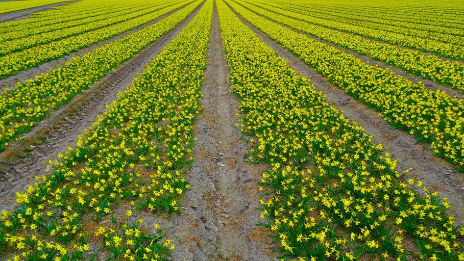 Keywords: daffodil field daffodil narcissus field plantation cultivation flower blossom bloom yellow spring april easter easter flower