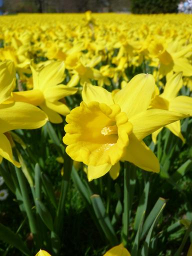 Keywords: daffodils daffodil field osterglocken yellow spring blossom bloom