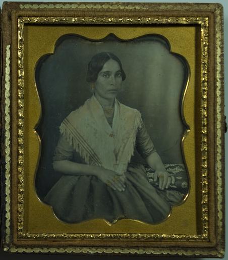 Keywords: Daguerrotipo Lucrecia 1848, autor Fermin Isaza.tif es Retrato de dama envigadeña Lucrecia Guerrero Uribe Es un daguerrotipo del artista Fermín Isaza en su gabinete fotográfico inaugurado en la ciudad de Medellín en 1848 donde realizó algunos retratos de personajes de la época con esta técnica Este daguerrotipo es una de las fotografías más antiguas de Colombia El daguerrotipo fue la primera técnica fotográfica que se conoció y fue desarrollada por Louis Daguerre a partir de las experiencias previas inéditas de Joseph Nicéphore Niépce Fue dada a conocer en 1839 por la Academia de las Ciencias Francesa Observando este daguerrotipo en particular se encuentran zonas que fueron coloreadas a mano por el artista dándole unos toque de oro sobre las joyas de la dama aretes collar prendedor del chal y anillos lo mismo que un poco al chal La placa de cobre con el recubrimiento de plata sobre la que se ha captado el retrato esta protegido con un vidrio y dentro de una caja de madera forrada en cuero La imagen puede observarse tanto en positivo como en negativo dependiendo del ángulo de visión y la dirección en que la luz se refleja en la placa Sus dimensiones exteriores son de 8 2 x 7 cms own Fermín Isaza fotografía realizada en la Biblioteca Pública Piloto de Medellín maumana 1848 Trabajo propio reconocimiento requerido mantener licencia Creative Commons CC-BY-SA-2 5 thumb LucreciaGuerreroUribe 1848 Cc-zero Daguerreotype portraits People in 1848 |