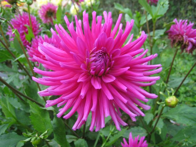Keywords: dahlia flower pink colors leaf green garden autumn buds