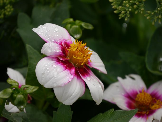 Keywords: dahlia nature plant flower blossom bloom white summer flower raindrop gorgeous