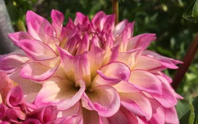 Keywords: dahlia orion closeup white and purple