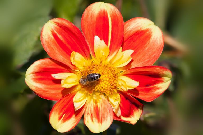 Keywords: dahlias dahlia geothermal plant composites red yellow orange flower garden ornamental flower blossom bloom flower ruff bee