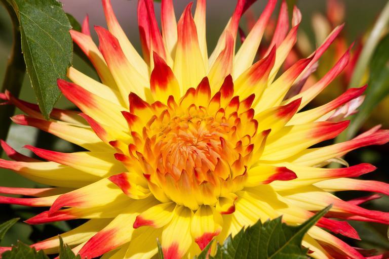 Keywords: dahlias dahlia geothermal plant composites red yellow orange flower garden ornamental flower blossom bloom flower