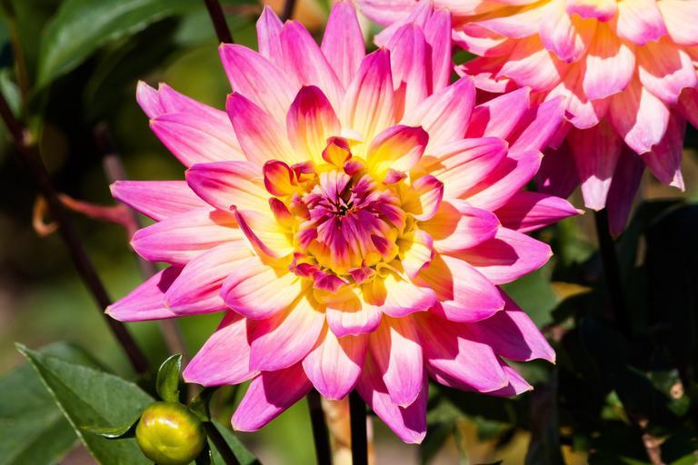 Keywords: dahlias dahlia geothermal plant composites pink yellow flower garden ornamental flower blossom bloom flower