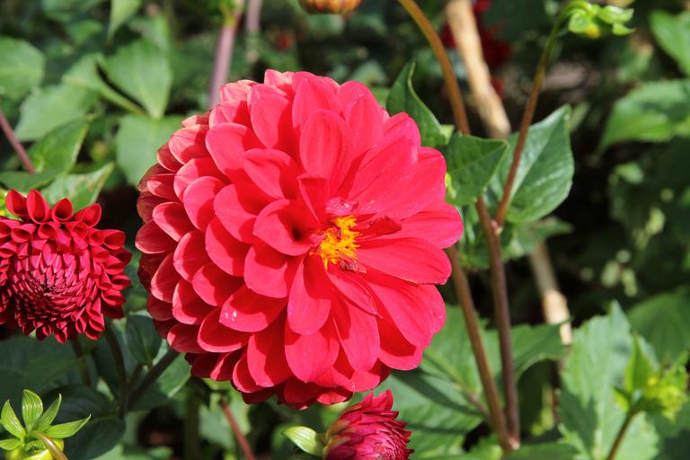 | Keywords: outdoor flower plant Dahlia (UK /deɪliə/ or US /dɑːliə/)[4] is a genus of bushy, tuberous, herbaceous perennial plants native to Mexico. A member of the Asteraceae (or Compositae), dicotyledonous plants, related species include the sunflower, daisy, chrysanthemum, and zinnia. There are 42 species of dahlia, with hybrids commonly grown as garden plants. Flower forms are variable, with one head per stem; these can be as small as 2 in (5.1 cm) diameter or up to 1 ft (30 cm) ("dinner plate"). This great variety results from dahlias being octoploids—that is, they have eight sets of homologous chromosomes, whereas most plants have only two. In addition, dahlias also contain many transposons—genetic pieces that move from place to place upon an allele—which contributes to their manifesting such great diversity. en.wikipedia.org/wiki/Dahlia allthingsplants.com/plants/view/194140/Dahlia-Dahlia-Tui-... Dahlia (UK /deɪliə/ or US /dɑːliə/)[4] is a genus of bushy, tuberous, herbaceous perennial plants native to Mexico. A member of the Asteraceae (or Compositae), dicotyledonous plants, related species include the sunflower, daisy, chrysanthemum, and zinnia. There are 42 species of dahlia, with hybrids commonly grown as garden plants. Flower forms are variable, with one head per stem; these can be as small as 2 in (5.1 cm) diameter or up to 1 ft (30 cm) ("dinner plate"). This great variety results from dahlias being octoploids—that is, they have eight sets of homologous chromosomes, whereas most plants have only two. In addition, dahlias also contain many transposons—genetic pieces that move from place to place upon an allele—which contributes to their manifesting such great diversity. en.wikipedia.org/wiki/Dahlia allthingsplants.com/plants/view/194140/Dahlia-Dahlia-Tui-... |
