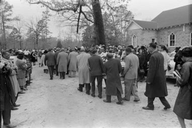 MAKE A MEME View Large Image Moncrief Photograph Collection Call number: PI/1994.0005 System ID: 94897. Link to the catalog Vernon Dahmer funeral, Shady Grove Baptist Church, Kelly Settlement (Hattiesburg, Miss.), afternoon of January 15, 1966. Casket carried to ...