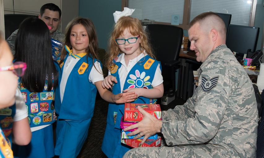 Keywords: girl scouts girlscouts Girl Scout Daisy Troop 3390 hosted a "Troops to Troops," cookie delivery event. The group delivered 200 boxes of cookies to Airmen of the 136th Airlift Wing, August 27, 2016, Naval Air Station Fort Worth Joint Reserve Base, Texas. Girl Scout Daisy Troop 3390 hosted a "Troops to Troops," cookie delivery event. The group delivered 200 boxes of cookies to Airmen of the 136th Airlift Wing, August 27, 2016, Naval Air Station Fort Worth Joint Reserve Base, Texas.