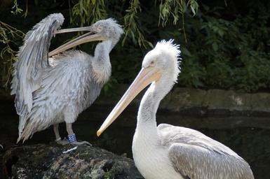Keywords: dalmatian pelican pelikan spring dress water bird water sit zoo two road animals for two