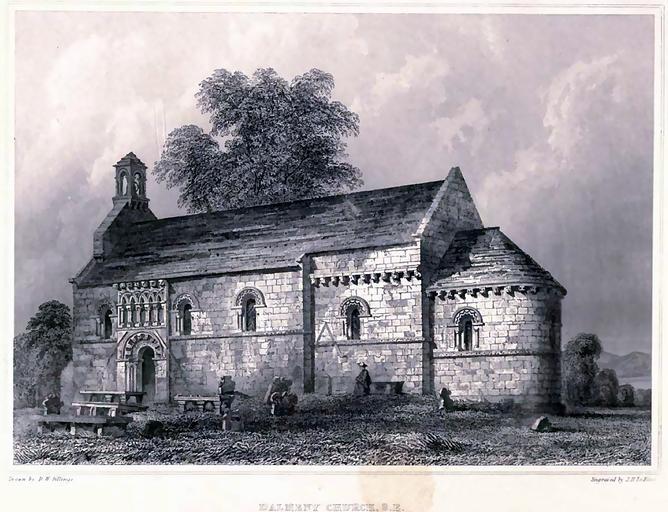 Keywords: Dalmeny-Church 1.jpg 19th-century engraving of St Cuthbert's parish church Dalmeny Edinburgh Scotland The view os from the southeast showing the apsidal chancel At the west end is the bell gable which was removed when the current west tower was built in 1937 fr Eglise de Dalmeny en Écosse The Baronial and Ecclesiastical Antiquities of Scotland R W Billings Published in 15th October 1901 PD-old PD-old Apses in Scotland Bell gables in Scotland Dalmeny Kirk Engravings of churches |