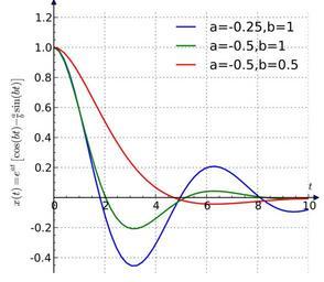 Keywords: Damped Oscillation2.svg Damped oscillaions given by the equation <math>x t e at \left \cos bt - \frac a b \sin bt \right</math> Created using python with numpy and matplotlib toolkits cot Source code <syntaxhighlight lang python > from numpy import from matplotlib pyplot import from mpl_toolkits axisartist import time linspace 0 10 fun lambda a b t exp a t cos b t - a/b sin b t fig figure figsize 5 5 ax1 Subplot fig 111 ax1 axis right set_visible False ax1 axis left set_axisline_style - > ax1 axis top set_visible False ax1 axis bottom set_visible False ax1 axis x ax1 new_floating_axis 0 0 ax1 axis x set_axisline_style - > ax1 plot time fun - 25 1 time lw 1 5 label 'a -0 25 b 1' ax1 plot time fun - 5 1 time lw 1 5 label 'a -0 5 b 1' ax1 plot time fun - 5 5 time lw 1 5 label 'a -0 5 b 0 5' ax1 grid True ax1 text 10 05 r' t ' ax1 set_ylabel r' x t e at \left \cos bt - \frac a b \sin bt \right ' ax1 set_ylim - 5 1 25 ax1 set_yticks arange -0 4 1 25 2 ylabels for i in arange -0 4 1 25 2 if i 0 ylabels append ylabels 1f i else ylabels append ylabels ax1 set_yticklabels ylabels ax1 minorticks_on ax1 legend frameon False fig add_subplot ax1 fig savefig test png bbox_inches tight pad_inches 15 </syntaxhighlight> cob own Krishnavedala 2011-06-14 File Damped svg validSVG Cc-zero Control engineering Control theory Images with Python source code Created with Matplotlib |