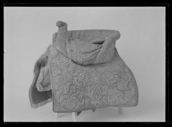 Keywords: Damsadel, 1650-talet, som tillhört drottning Kristina, tillverkad i Frankrike, monterad i Sverige - Livrustkammaren - 78314.tif Damsadel av ljust rosa sammet med yttäckande broderi av blommor rankor och voluter med silvertråd silverlan och delvis paljetter Rektangulära kappor fodrade och kantade med mörkbrunt läder och silverfrans Sitsen till största delen omsluten av en 145 mm hög bom på utsidan med stoppad vulstformig kant Sitsen bommens insida och kanten stickade med tvinnad silvertråd <br/><br/>Hög sadelknapp utan broderier överst rundad framåt utdragen räfflad av försilvrad mässing Sadelknappen och sitsen utanför bommen kantade med tännlikor av försilvrad mässing Bom klädd med ljust skinn Bossor av naturfärgat linne kantade med vitt skinn och fodrade med ljusbrunt skinn Tre stroppar av brunt kläder för sadelgjord En skinnklädd sölja för stigläder Två söljor för förbygel och en för svansrem alla av stål original caption decade 1650 velvet Färg rosa material sammet - silver thread - brass - hide Färg vit ljusbrun material skinn - linen Färg natur material linne - steel size mm 590 size mm 350 sits LRK Kristina av Sverige Erik XIV på Åbo slott 1982-1983 Bilder av Kristina 2013-2014 Livrustkammaren place of origin original filename LN_B09819_012699 45546 inventory number LRK 9011 78314 CC0 Damsadel 1650-talet som tillhört drottning Kristina tillverkad i Frankrike monterad i Sverige - Livrustkammaren - 78314-negative tif Saddles Media contributed by LSH unmatched material Media contributed by LSH dim-with multiple size templates Media contributed by LSH unmatched creator Horse tack images from Livrustkammaren Media contributed by LSH 2013-10 |