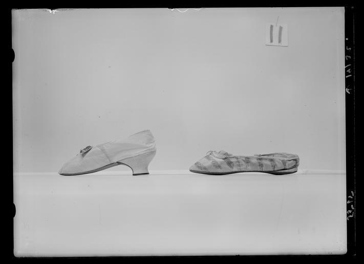 | Keywords: Damsko - Livrustkammaren - 34729.tif Av siden randigt i ljust beiget siden och silver - inramat av guldtrådar Skon bars av drottning Hedvig Elisabeth Charlotta 1817 Skon har mycket smal och rak läst och har spetsigt rundad tå Ovanläder och bakkappa förenas med rätt långt fram liggande sidsömmar I ringningen framtill finns en dragsko med linnesnöre att knyta Ringningen framtill är dekorerad med 2 tätt rynkade benvita sidenband Innersula och bakkappa av vitt skinnn f ö foder av beiget linne Vristband av 10 mm breda ljust beiga sidenband fastsatta som öglor vid ringningen På innersulan spår av inskription med bläck Denna sko bars första gången Hedw Elisab Charlotta 1817 På Galla Dagen då undertecknad var tjenstgörande Kammarherre Fredr Boije <br/>Sulan av läder är sliten och försedd med 3 pinnhålsstämplar 1 stämpel finns under tån en under hålfoten och en stämpel under hälen De är stjärnformiga och i diam 3 mm original caption 1817 silk Färg beige d1 - dräkt - yttermaterial material siden - gold thread - silver thread - linen Färg beige material linne - silk Färg beige material siden g 39 size mm 225 60 45 LRK Hedvig Elisabeth Charlotta av Sverige Skor ger mer - makt flärd magi 2007 place of origin original filename LN_B01964_004844 54170 inventory number LRK 17575 34729 CC0 Damsko - Livrustkammaren - 34729-negative tif <gallery caption Different images of same object > File Damsko - Livrustkammaren - 25027 tif </gallery> Shoes Media contributed by LSH 2013-10 wikipedia sv Hedvig Elisabet Charlotta av Holstein-Gottorp |
