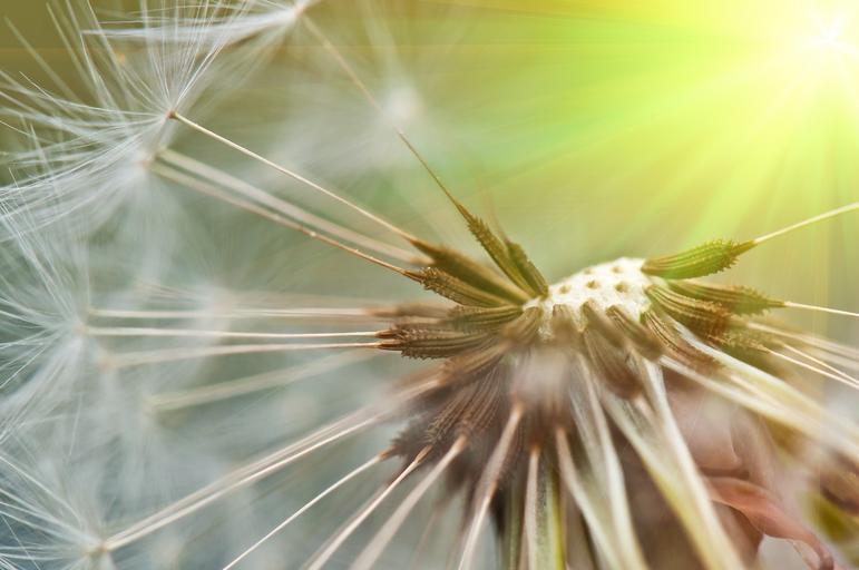 Keywords: dandelion spring summer close seeds nature pointed flower flower plant flowers garden sky flying seeds composites back light pollen faded white macro green common flight wild flower