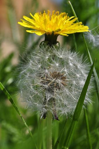Keywords: dandelion yellow white meadow flowers close nature spring
