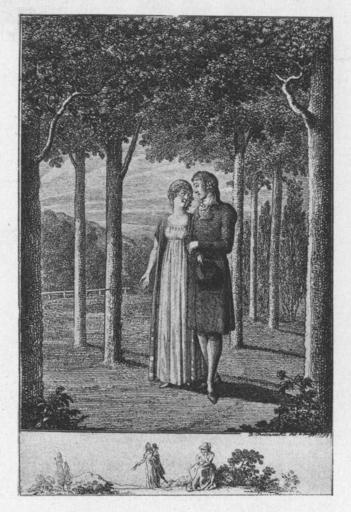Keywords: Daniel Chodowiecki Braut.jpg Drei Blätter zu Neuffer's Dichtung 1 Die Braut Ein junger Mann geht mit seiner Braut bei Sonnenuntergang in einer Lindenallee spazieren Beschreibung lt Quelle <br>Blatt 1 Blatt 2 Blatt 3 der Serie Chodowiecki Auswahl aus des Künstlers schönsten Kupferstichen 135 Stiche auf 30 Carton-Blättern Nach den zum Theil sehr seltenen Originalen in Lichtdruck ausgeführt von A Frisch Berlin Neue Folge Verlag von Mitscher Roestell Berlin 1885 self scanned from book Creator Daniel Chodowiecki PD-old-100 Daniel Chodowiecki Brides and grooms in art |