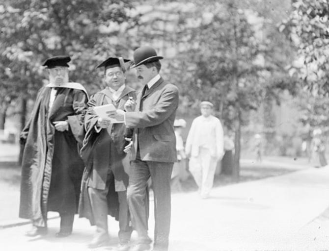 Keywords: Daniel Coit Gilman William Rainey Harper.jpg en American educator and university president Daniel Coit Gilman walking with William Rainey Harper president of the University of Chicago at convocation day at the campus in the Hyde Park area of Chicago on 16 June 1903 They are accompanied by an unidentified man http //memory loc gov/cgi-bin/query/h ammem/cdn field NUMBER+ band ichicdn+n000601 Chicago Daily News 1903-06-16 PD-old University of Chicago William Rainey Harper |