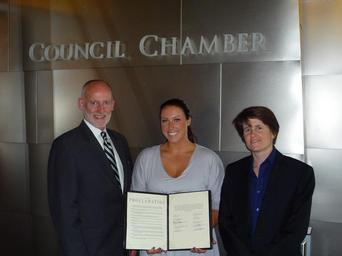 Keywords: burgess indoor October 1, 2010. Councilmembers Burgess and Clark present University of Washington softball star Danielle Lawrie with a proclamation at City Hall. October 1, 2010. Councilmembers Burgess and Clark present University of Washington softball star Danielle Lawrie with a proclamation at City Hall. |