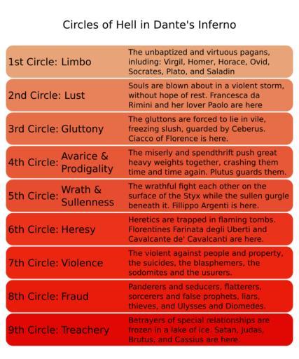 Keywords: Dantes Inferno - Levels of Hell.svg A diagram of the 9 levels of Dante's Hell en Image DantesInferno Levels png 2008-02-02 2008-02-12 en User Elias Lassiter User Stannered Elias Lassiter en Image DantesInferno Levels png Created with Inkscape Dante's Inferno |