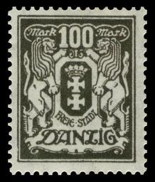 Keywords: Danzig 1923 141 großes Staatswappen.jpg / Briefmarkenbeschreibung Dauermarkenserie Definitive stamp series Ausgabepreis 100 Mark First Day of Issue / Erstausgabetag 27 April 1923 http //markapochtoy in ua/ product 141-danzig Michel-Katalog-Nr 141 Danzig scanned by NobbiP 2011-09-30 Max Buchholz 1878 “1942 PD-old-auto-1996 1944 PL Max Buchholz German stamps review keep <gallery> File Danzig 1923 138 Wappen jpg 1923 138 File Danzig 1923 139 großes Staatswappen jpg 1923 139 File Danzig 1923 140 Wappen jpg 1923 140 File Danzig 1923 142 großes Staatswappen jpg 1923 142 </gallery> Philately großes Staatswappen mit 2 flankierenden Löwen Nennwert 100 Mark 1923-04-27 Buchholz 1 807 300 Buchdruck 141 Danzig Coats of arms of GdaÅ„sk on stamps 1923 stamps of the Free City of Danzig |