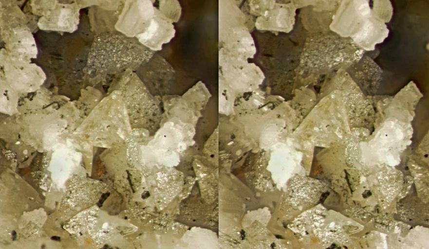 | Keywords: Daqingshanite-(Ce)-283082.jpg en Locality Poudrette quarry Demix quarry; Uni-Mix quarry; Desourdy quarry; Carrière Mont Saint-Hilaire Mont Saint-Hilaire La Vallée-du-Richelieu RCM Montérégie Québec Canada FOV 1 3 x 1 5 mm Via Monteregian Minerals LH Stereo pair MOB coll The pale yellowish triangular xl in the center is daqingshanite It is actually a trigonal pyramid that looks like a shallow tetrahedron The xl is less than 0 4 mm on edge Daqingshanite is a very rare mineral According to Horvath Min Rec 1990 it was probably found only once at MSH I used stereo because the xls are very pale and on a very pale background Stereo overcomes the lack of contrast to some extent There are two other daqingshanite xls in the photo but they are even smaller and very hard to spot due to their size and orientation Again - stereo helps 2012-10-21 11 51 52 http //www mindat org/photo-283082 html Modris Baum other versions cc-zero Daqingshanite- Ce |