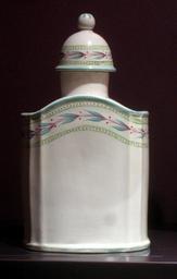 Keywords: DAR pot - IMG 8634.JPG Tea canister pearlware with polychrome enamel; Josiah Wedgwood circa 1790 Pottery exhibited in the DAR Museum National Society Daughters of the American Revolution 1776 D Street NW Washington DC USA I took this photograph 2011-01-18 13 34 16 Daderot Public domain Pottery in the DAR Museum Wedgwood porcelain