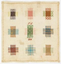 | Keywords: Darning sampler - Google Art Project (6814946).jpg  6938587 Unknown /collection/cooper-hewitt-national-design-museum/artwork/darning-sampler-unknown/6814946/ 176798 author /collection/cooper-hewitt-national-design-museum/ Cooper-Hewitt National Design Museum 3644669 http //www cooperhewitt org/ /collection/cooper-hewitt-national-design-museum/artwork/darning-sampler-unknown/6814946/ 1836 1836 Medium silk embroidery on cotton foundationTechnique embroidered in running and four sided cross stitches with overcasting over withdrawn element work on plain weave foundation 240 6814946 False 1836 1981-28-208 http //collection cooperhewitt org/view/objects/asitem/id/176798 Bequest of Gertrude M Oppenheimer Darning sampler 1830 1840 w235 x h240 cm 1836 False 0 95703125 Object darning-sampler-unknown Darning sampler d 235 H x W 24 1 x 23 5 cm 9 1/2 x 9 1/4 in F L Medium silk embroidery on cotton foundationTechnique embroidered in running and four sided cross stitches with overcasting over withdrawn element work on plain weave foundation special url_id ZwFfWB5pBc7bXA PD-old-100-1923 Google Art Project works by unknown artist Textiles in the Cooper “Hewitt Smithsonian Design Museum 1830s samplers Google Art Project works in Cooper-Hewitt Smithsonian Design Museum 1836 works |