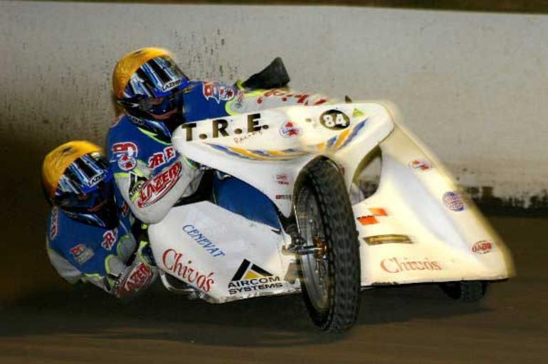 Keywords: Darrin-Treloar.jpg en Darrin Treloar/Justin Plaisted Own GarethBemister Speedway sidecars