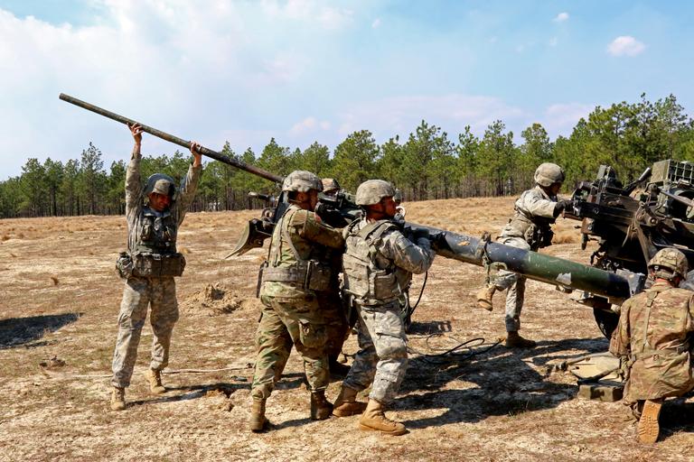 Keywords: 82nd airborne division 82ndairbornedivision 82nd airborne divarty 82ndairbornedivarty divarty dart 319th afar 319thafar gun devils gundevils howitzer hipshoot m119a3 redleg artillery airborne 3-319th afar 3319thafar outdoor soil people Airborne Artillerymen assigned to the 82nd Airborne Division Artillery lift their nearly 2 1/2-ton M119A3 light howitzer as a team to set the gun in position during a Division Artillery Readiness Test on Fort Bragg N.C., March 2, 2016. The DART tests the battery in support of Global Response Battalion 1 on the their ability to conduct standard and non-standard fire missions such as the out of traverse, and emergency fire missions both day at night under stressful situations to ensure they can support any mission for GRB-1 within 18 hours of notification. (82nd ABN DIVARTY PAO, Capt. Joe Bush/ Released) Airborne Artillerymen assigned to the 82nd Airborne Division Artillery lift their nearly 2 1/2-ton M119A3 light howitzer as a team to set the gun in position during a Division Artillery Readiness Test on Fort Bragg N.C., March 2, 2016. The DART tests the battery in support of Global Response Battalion 1 on the their ability to conduct standard and non-standard fire missions such as the out of traverse, and emergency fire missions both day at night under stressful situations to ensure they can support any mission for GRB-1 within 18 hours of notification. (82nd ABN DIVARTY PAO, Capt. Joe Bush/ Released) |