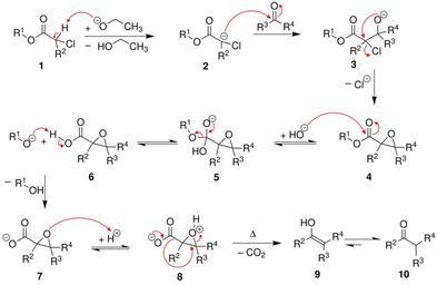 MAKE A MEME View Large Image Darzens-Glycidester-Kondensation 2 g.svg de Darzens-Glycidester-Kondensation_Mechanismus own Kado6450 2012-06-01 Cc-zero Darzens reaction Reaction mechanisms