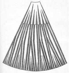 Keywords: Das Ganze der Kürschnerei, Paul Cubäus, Alexander Tuma, 1. Auflage ( Fig. 24, S. 295), Das Galonieren.jpg Technical book for Furriers Paul Cubaeus Das Ganze der Kürschnerei Gründliches Lehrbuch alles Wissenswerthen über Waarenkunde Zurichterei Färberei und Verarbeitung der Pelzfelle Erste Auflage Wien Pest Leipzig 1891 Seite 295 Fig 24 Fig 22 stellt einen Zobelschweif dar Man schneidet unten circa 1½ bis 2 <sup>c</sup>/m die Spitze dann oben an der Wurzel rechts und links die wilden Haare ab Die Spitzen kann man unten an Boas Besätzen Krägen 18px wo die Schweifspitze den Schluß bildet verwenden; bei Muffen muß sie abgeschnitten werden weil der Schweif sonst zu sehr absticht Hierauf theilt man den Schweif in der Breite in vier Theile die zwei mittelsten bleiben soweit der Schweif egal breit ist beisammen nur unten wo er schmäler wird setzt man ein schräges Stückchen Galon Fig 22 ein Die zwei Streifen an den Seiten werden eingeschnitten und mit 6 <sup>m</sup>/m breitem Galon versehen an einer Seite kommt 1 <sup>c</sup>/m breit Galon Auf diese Weise bereitet man vor zu Boas und Muffen Bei Boas nimmt man gewöhnlich zwei Schweife nebeneinander und muß auch beim Sortieren dafür sorgen daß oben etwas heller raucher unten etwas dunklere flachere genommen werden damit die Boa nach unten etwas spitzer verläuft Bei Muffen nimmt man je nach der Größe des Muffs vier Höhen übereinander und 5-7 Schweife nebeneinander Die größte Sorgfalt ist darauf zu achten daß die einzelnen Schweife sowie die Galons genau aufeinander passend gesetzt werden Verschönern kann man die Arbeit wenn man zwei Schweife in der Länge mit einander versetzt so daß sie einen doppellangen bilden Man vermeidet auf diese Weise die Abstufung in der Farbe Wie in Figur 23 theilt man jeden Schweif in der Länge in sechs Theile und setzt dieselben übereinander wie angegeben Diese Eintheilung wird vorher durch Bleistiftstriche markirt dann zuerst die Galons eingeschnitten dann erst die Querschnitte gemacht versetzt zusammengenäht und die Galons eingesetzt Schwieriger wird die Arbeit des Versetzens der Schweife wenn man Pelerinen oder Besätze welche nach unten breiter auslaufen aus Schweifen zu fertigen hat In welcher Weise diese Arbeit auszuführen ist hängt von der Länge der Pelerine sowie der Schweife ab Aus Fig 24 ist ersichtlich daß man am besten oben einen Aufsatz von halben Schweifen macht die man auch nur nach unten zu galoniert um sie keilförmig zu machen und die untere Hälfte bei welcher man dann auch die äußerste Schweifspitze nicht abschneidet zum Einsetzen zu benutzen damit die Pelerine nach unten die verlangte Weite bekommt Figur zeigt einen Abschnitt der Pelerine die nur so hoch ist daß 1½ Schweifhöhe genügen Fig 25 ist auf drei Schweifhöhen berechnet und nach unten weiter die unteren Schweife sind versetzt bis zur Hälfte dann abgeschnitten und aus der unteren Hälfte der Schweife welche der dunkleren Färbung wegen egaler aussieht mit Einsetzen der drei halben Schweife des Aufsatzes eine dritte Höhe gemacht Man sieht ferner auf der Zeichnung daß an diesem Aufsatz um die keilförmige Form herauszubringen die Schweife nach oben gar nicht mehr galonirt sind sondern an der äußersten Kante fest zusammengenäht was auch deswegen nöthig ist um oben eine saubere Kante zu haben Bei Besätzen von ein oder zwei Schweifen Höhen die mehr gerade gearbeitet sind muß man aber um den Galon nicht an der oberen Kante zu haben und ein sauberes Aussehen zu bewirken Schweife in der Länge theilen entweder in 2 3 oder 4 Theile davon 1 Käntchen arbeiten und quer oben darüber ansetzen Da nun das Haar nach oben schlägt so braucht man beim Aufsetzen des Besatzes denselben nicht zu verziehen sondern nur zu vernähen Collection Kuhn 1891 Paul Cubaeus PD-old <gallery> Das Ganze der Kürschnerei Paul Cubaeus Alexander Tuma 1 Auflage Fig 22 S 293 Das Galonieren jpg Fig 22 Das Ganze der Kürschnerei Paul Cubäus Alexander Tuma 1 Auflage Fig 23 S 294 Das Galonieren jpg Fig 23 Das Ganze der Kürschnerei Paul Cubäus Alexander Tuma 1 Auflage Fig 24 S 295 Das Galonieren jpg Fig 24 Das Ganze der Kürschnerei Paul Cubäus Alexander Tuma 1 Auflage Fig 25 S 296 Das Galonieren jpg Fig 25 </gallery> Das Ganze der Kürschnerei von Paul Cubaeus 1891 Erste Auflage Sable fur-skin manufacturing Fur-tail manufacturing Taping fur |