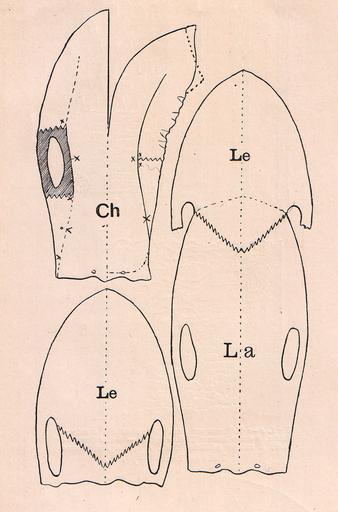 Keywords: Das Kürschner-Handwerk, II. Auflage 3. Teil, S. 75. Verarbeitung der Sealfelle (2).jpg Verarbeitung von Sealfell Haarseehunde das Oberhaar ausgerupft Fig Ch zeigt wie ein Fell geschnitten wird um aus demselben einen grossen Chalkragen wie beisw für Pelze notwendig ist herzustellen Die flache Flossenpartie ist herausgeschnitten und die notwendigen Schnitte angedeutet linke Seite Die rechte Seite zeigt diese Schnitte genäht Fig La und Le bringen zur Ansicht wie ein Fell durch AufÂsetzen eines Pumpfes verlängert werden kann Dieser Fall wird bei der Herstellung von langen Mänteln oft notwendig Die günstigste Verbindung zwischen zwei Fellen ist wie angegeben Pumpf gegen die Mitte des Felles Auf diese Weise erreicht man eine Verbindung die in Haar gesehen denselben žSchein hat Vor dem Abzwecken ist das Leder stets gut mit dem Streckholz auszureiben Fertige Sealsachen sind vor dem Füttern immer gut zu läutern und hierauf mit dem Strich einzustreichen Die VerwenÂdung der Abfälle richtet sich nach der Form des herzustellenden Gegenstandes Zu Muffen beispw wählt man ein regelmässiges grösseres Stück für die Mitte und füllt dieses dann mit kleineren Stücken auf die nötige Breite aus Die Flossenstücken werden chevronartig zusammengesetzt und dann auch zu grösseren GegenÂständen wie Jaketts oder Cravaten und Baretts verwendet oder wenn dieselben sehr gering sind zu Aermelfuttern Die besten Gegenstãnde lassen sich von den aus der Mitte der Felle ausÂfallenden Stücken herstellen Die langen Streifen wie auch die kurzen breiten Stücken werden je für sich sortirt und verarbeitet Zunächst werden grössere Vierecke zusammengestellt die dann wieder beispw zu Pelzfuttern vereinigt werden Die ãussersten Pumpfstücke werden zuweilen auch quer d h die Haare auseiÂnanderlaufend wie polnischer Besatz verarbeitet Paul Larisch und Josef Schmid Das Kürschner-Handwerk Eine gewerbliche Monographie II Auflage Teil III 1910 S 75 1910 Larisch/Schmid PD-old <gallery>Das Kürschner-Handwerk II Auflage 3 Teil S 73-74 Verarbeitung der Sealfelle jpg Teil 1 des Artikels</gallery> Das Kürschner-Handwerk Paul Larisch und Joseph Schmid II Auflage S 75 Seal fur-skin manufacturing |