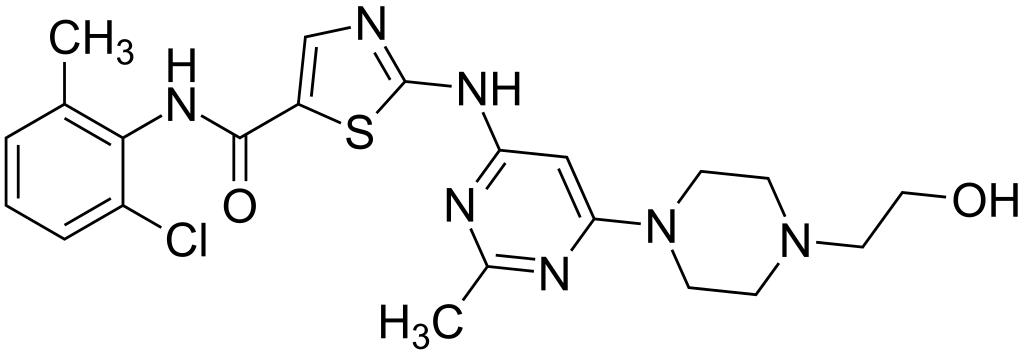 Keywords: Dasatinib 200.svg validSVG Structure of N- 2-chloro-6-methylphenyl -2- 6- 4- 2-hydroxyethyl piperazin-1-yl -2-methylpyrimidin-4-yl amino thiazole-5-carboxamide Own 2014-04-24 Emeldir <span class signature-talk >talk</span> Chemical structure verified https //upload wikimedia org/wikipedia/commons/7/7d/Dasatinib_200 svg 1S/C22H26ClN7O2S/c1-14-4-3-5-16 23 20 14 28-21 32 17-13-24-22 33-17 27-18-12-19 26-15 2 25-18 30-8-6-29 7-9-30 10-11-31/h3-5 12-13 31H 6-11H2 1-2H3 H 28 32 H 24 25 26 27 ZBNZXTGUTAYRHI-UHFFFAOYSA-N 302962-49-8 Synonyms <small>2- 6-4- 2-Hydroxy-ethyl -piperazin-1-yl-2-methyl-pyrimidin-4-ylamino -thiazole-5-carboxylic acid 2-chloro-6-methyl-phenyl -amide 5-Thiazolecarboxamide N- 2-chloro-6-methylphenyl -2-4- 2-hydroxyethyl -1-piperazinyl-2-methyl-4-pyrimidinylamino- N- 2-Chloro-6-methylphenyl -2- 6-4- 2-hydroxyethyl -1-piperazinyl-2-methyl-4-pyrimidinyl amino -5-thiazolecarboxamide BMS 354825 BMS-354825 Dasatinib N- 2-chloro-6-methylphenyl -2-4- 2-hydroxyethyl piperazin-1-yl-2-methylpyrimidin-4-ylamino-1 3-thiazole-5-carboxamide N-2-Chloro-6-methylphenyl-2-4- 2-hydroxyethyl -1-piperazinyl-2-methyl-4-pyrimidinylamino-5-thiazolecarboxamide Sprycel</small> PD-chem Dasatinib |