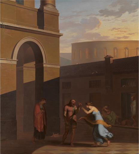 Keywords: Davus taler med Mysis, Androspigens tjenestepige, som har lagt det nyfødte barn uden for Simos hus. Den lyttende Cremes opgiver sin datters forbindelse med Pamfilus.jpg Artwork Creator Nicolai Abildgaard 1804 Oil canvas cm 157 5 142 institution Statens Museum for Kunst Copenhagen Sal 217B object history Købt 1849 Acquired 1849 exhibition history credit line Part of a series See KMS587 KMS588 and KMS589 accession number KMS590 http //soeg smk dk/vark asp ObjectId 4617 PD-old-100 Nicolai Abraham Abildgaard 1804 paintings Paintings in Statens Museum for Kunst Publius Terentius Afer Classicist history paintings |