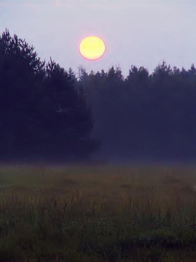 Keywords: dawn glade forest the rising sun fog nature