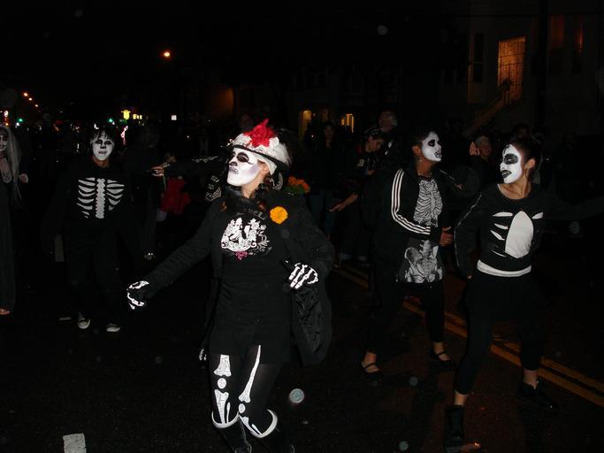 | Keywords: Day of the Dead (Dia de los Muertos) procession in San Francisco, 2006.JPG Day of the Dead or in Spanish Dia de los Muertos procession and altars in the Mission District San Francisco California It is annually celebrated in San Franciso since 1988 Many participants come in costumes where dark or black and white colors are prevalent with faces painted to emulate skulls or with skull masks The procession goes through several streets in the Mission District ending at the Gardfield park where altars are set up The organizers http //www dayofthedeadsf org/ explain the tradition in the following way Dia de los Muertos is a traditional Meso-American holiday dedicated to the ancestors; it honors both death and the cycle of life In Mexico neighbors gather in local cemeteries to share food music and fun with their extended community both living and departed The celebration acknowledges that we still have a relationship with our ancestors and loved ones that have passed away In San Francisco Day of the Dead has been celebrated in the Mission district since the early 70s with art music performances and a walking procession which help us contemplate our existence and mortality -- a moment to remember deceased friends and family and our connections beyond our immediate concerns For the 2013 procession the organizers described the event as follows Over 15 000 people will gather in the Mission to participate in the 26th Annual Dia de los Muertos or Day of the Dead Procession Altars Through art music and ritual this event honors our ancestors and celebrates the vitality and richness of today's community While the ceremony remains true to its Latino roots the San Francisco procession actively encourages participation by people of all origins Bring candles photos food or something that reminds you of a person that has passed away The altars are community art installations that are intended to change as each person adds something to the hearth 2006-11-02 own Al83tito cc-zero Uploaded with UploadWizard Day of the Dead in San Francisco 2006 in San Francisco |