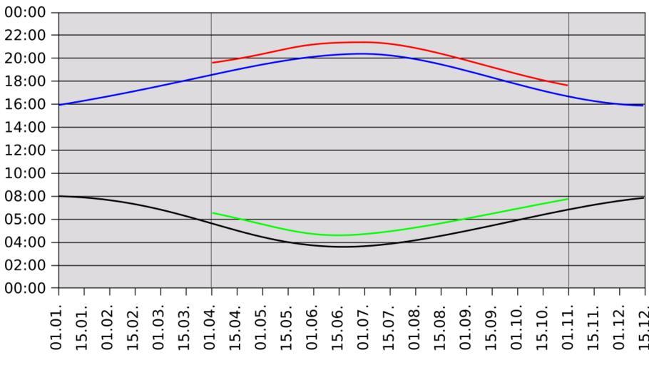 MAKE A MEME View Large Image Daylight Saving Time.svg Daylight Saving Time Sommerzeit Sonnenaufgangs- und Untergangszeiten bei Normalzeit und Sommerzeit; The chart plots the clock times with DST adjustment as separate lines of sunrise and sunset in Greenwich England ...