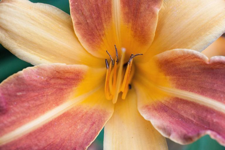 Keywords: daylily hemerocallis day lily flower flower plant nature summer orange yellow brown red macro stamp stamens