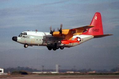 Keywords: DC-130A VC-3 taking off from Point Mugu 1983.JPEG A U S Navy Lockheed DC-130A Hercules BuNo 570497 assigned to Composite Squadron VC-3 Bloodhounds at Naval Air Station Point Mugu California USA on 27 January 1983 carrying BQM-34S Firebee drones This aircraft had been delieverd to the U S Air Force as an C-130A-45-LM in 1957 and was retired on 8 January 1979 It was transferred to the U S Navy on 13 March 1979 and converted to a DC-130A drone control aircraft Curiously it kept its USAF serial number and was not assigned a regular USN BuNo It became the oldest C-130 in US military service and was even deployed to Iraq in 2003 It was finally retired to the AMARC as 2G0055 on 27 June 2007 http //www defenseimagery mil U S DefenseImagery photo VIRIN http //www dodmedia osd mil/DVIC_View/Still_Details cfm SDAN DNSC8404495 JPGPath /Assets/1986/Navy/DN-SC-84-04495 JPG DN-SC-84-04495 1983-01-27 PHAN Sherry DeLong USN PD-USGov-Military-Navy DC-130A Hercules Pacific Missile Test Center Point Mugu Ryan Firebee Fleet Composite Squadron 3 United States Navy |