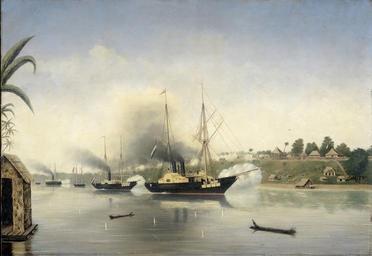 Keywords: De beschieting van de Kraton van de Sultan van Djambi door de gouvernementsmarineschepen Celebes, Admiraal van Kinsbergen en Onrust op 8 september 1858 Rijksmuseum Amsterdam SK-A-4105.jpg Netherlands kraton of Sultan Taha of Jambi by the Dutch East Indies naval ships Celebes Admiraal van Kinsbergen and Onrust on 8 September 1858 Three Dutch gunboats on the Jambi river are firing at houses and huts alongside the river De beschieting van de Kraton van Sultan Taha van Djambi door de gouvernementsmarineschepen 'Celebes' 'Admiraal van Kinsbergen' en 'Onrust' op 8 september 1858 De Nederlandse kanonneerboten op het water van de rivier Djambi en vuren schoten op de huizen en hutten op de wal between 1858 1865 ucfirst oil on canvas cm 70 5 100 institution Rijksmuseum Amsterdam place of discovery object history Anna Barta Swaan née Buddingh 1884- Batavia today Jakarta by 1964 Abraham van der Meer art dealer Amsterdam ProvenanceEvent 1964 purchase LangSwitch das the le het ~ Rijksmuseum Amsterdam Amsterdam Amsterdam A van der Meer gallery Amsterdam Amsterdam price NLG 3200 exhibition history credit line accession number SK-A-4105 place of creation Dutch East Indies today Indonesia presumably www rijksmuseum nl https //www rijksmuseum nl Home https //www rijksmuseum nl/nl/collectie/SK-A-4105 Info https //www rijksmuseum nl/assetimage2 jsp id SK-A-4105 Pic anonymous SK-A-4105 anonymous northern Netherlands De beschieting van de Kraton van de Sultan van Djambi door de gouvernementsmarineschepen 'Celebes' 'Admiraal van Kinsbergen' en 'Onrust' op 8 september 1858 1858-1865 anonymous 32578 anonymous Netherlands ~ 1858 De beschieting van de Kraton van de Sultan van Djambi ~ 1858 1853-1863 anonymous 1967 'Keuze uit de aanwinsten' Bulletin van het Rijksmuseum vol 15 P-page 94 Ill 8 673 673 Q26998541 PD-Art-100 1858 in Indonesia History of Indonesia Dutch 19th-century paintings in the Rijksmuseum Amsterdam Anonymous 1858 Jambi |