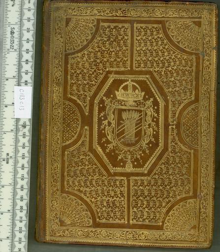 Keywords: De capite sacri ordinis Sancti Spiritus dissertatio. In qua ortus, progressusque ordinis totius, ac speciatim Romanæ domus amplitudo, prærogatiuum jus, & oeconomia disseruntur. (Lugduni, 164 - Upper cover (C183c13).jpg Style All over design Fan Armorial Compartments; Caption Upper cover; Colour Brown; Edge Gilt exhibition history Decorative Technique Tooled in gold; Cover Material Goatskin includes morocco turkey etc Probably a Roman binding On upper paste down ink ms notes A V upper flyleaf; E III 2 With thanks to Alvise Figa' Talamanca for the attribution Traces of two pairs of ties object history Text 1649; Lyons; Christina Queen of Sweden 1626-1689 object type Cc-zero place of creation Binding Italy place of discovery A R A Hobson French and Italian Collectors Oxford 1953 n74 British Library image http //www bl uk/catalogues/bookbindings/LargeImage aspx RecordId 020-000014890 ImageId ImageId 54284 Copyright BL De capite sacri ordinis Sancti Spiritus dissertatio In qua ortus progressusque ordinis totius ac speciatim Romanæ domus amplitudo prærogatiuum jus oeconomia disseruntur Lugduni 1649 Uploaded with GWToolset De capite sacri ordinis Sancti Spiritus dissertatio In qua ortus progressusque ordinis totius ac speciatim Romanæ domus amplitudo prærogatiuum jus oeconomia disseruntur Lugduni 164 - Upper cover C183c13 http //www webarchive org uk/bldatasets/bindings/c183c13 jpg Bookbinding 17th-century bookbinding British Library Bookbindings |