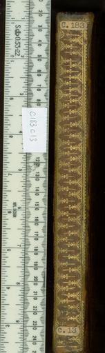 Keywords: De capite sacri ordinis Sancti Spiritus dissertatio. In qua ortus, progressusque ordinis totius, ac speciatim Romanæ domus amplitudo, prærogatiuum jus, & oeconomia disseruntur. (Lugduni, 164 - Spine (C183c13).jpg Style All over design Fan Armorial Compartments; Caption Spine; Colour Brown; Edge Gilt exhibition history Decorative Technique Tooled in gold; Cover Material Goatskin includes morocco turkey etc Probably a Roman binding may be by the Rospigliosi workshop to be checked Smooth spine object history Text 1649; Lyons; Christina Queen of Sweden 1626-1689 object type Cc-zero place of creation Binding Italy place of discovery A R A Hobson French and Italian Collectors Oxford 1953 n74 For Rospigliosi bindery see See M M Foot The Henry Davis Gift vol I London 1978 Appendix p 333-336 p 335 n 57 A Hobson French and Italian Collectors pp xli-xlii 152-155; Sten G Lindberg Queen Christina Bindings Analecta Reginensia I Queen Christina of Sweden Documents and Studies ed M von Platen Stockholm 1966 pp 199-225; Piccarda Quilici La Legatoria Romana dal Rinascimento al Barocco and Jose Ruysschaert Le Legature Romane della Regina Cristina in Legatura Romana Barocca 1565-1700 Rome 1991 Folger 12 11 Folger Shakespeare Library Fine and historic bookbindings from the Folger Shakespeare Library New York 1992 British Library image http //www bl uk/catalogues/bookbindings/LargeImage aspx RecordId 020-000014891 ImageId ImageId 54285 Copyright BL De capite sacri ordinis Sancti Spiritus dissertatio In qua ortus progressusque ordinis totius ac speciatim Romanæ domus amplitudo prærogatiuum jus oeconomia disseruntur Lugduni 1649 Uploaded with GWToolset De capite sacri ordinis Sancti Spiritus dissertatio In qua ortus progressusque ordinis totius ac speciatim Romanæ domus amplitudo prærogatiuum jus oeconomia disseruntur Lugduni 164 - Spine C183c13 http //www webarchive org uk/bldatasets/bindings/c183c13spine jpg Bookbinding 17th-century bookbinding British Library Bookbindings |